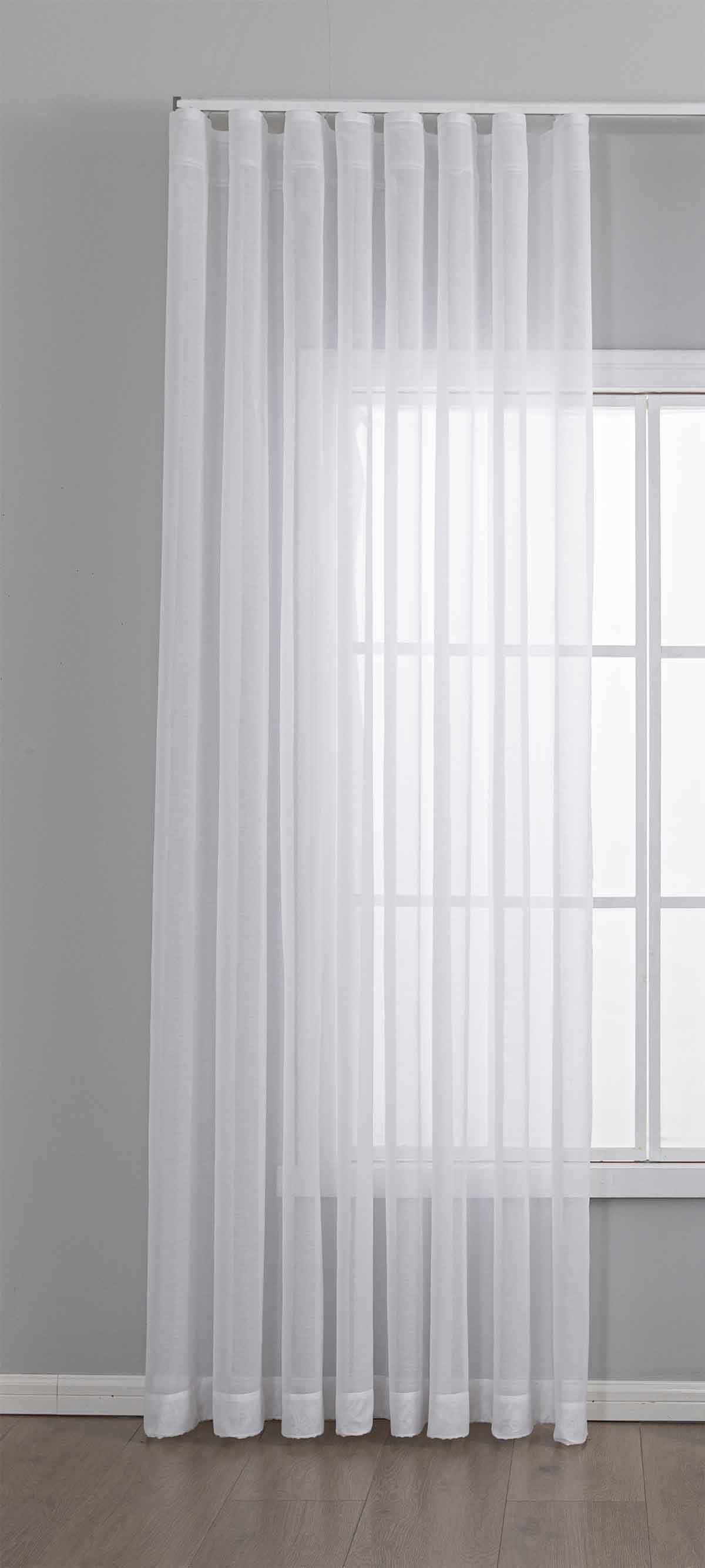 - Design: Zeitlos, leicht und modern. Die transparente Stoffqualität verleiht Räumen Offenheit und Eleganz. Ideal für helle Wohnkonzepte und große Fensterflächen.