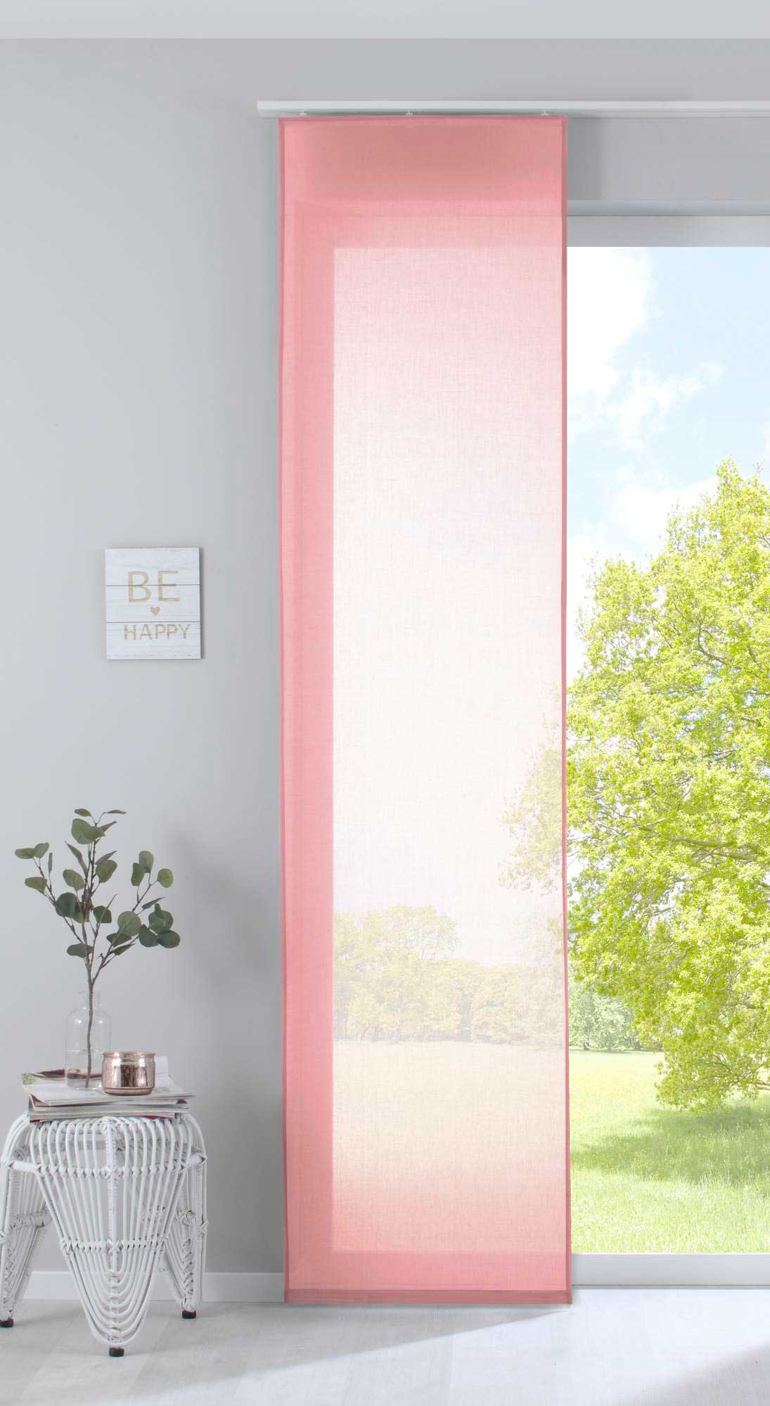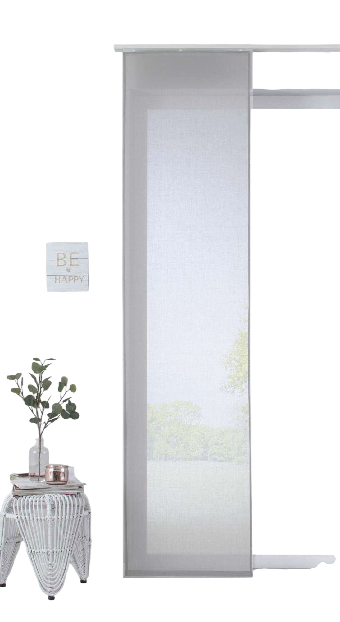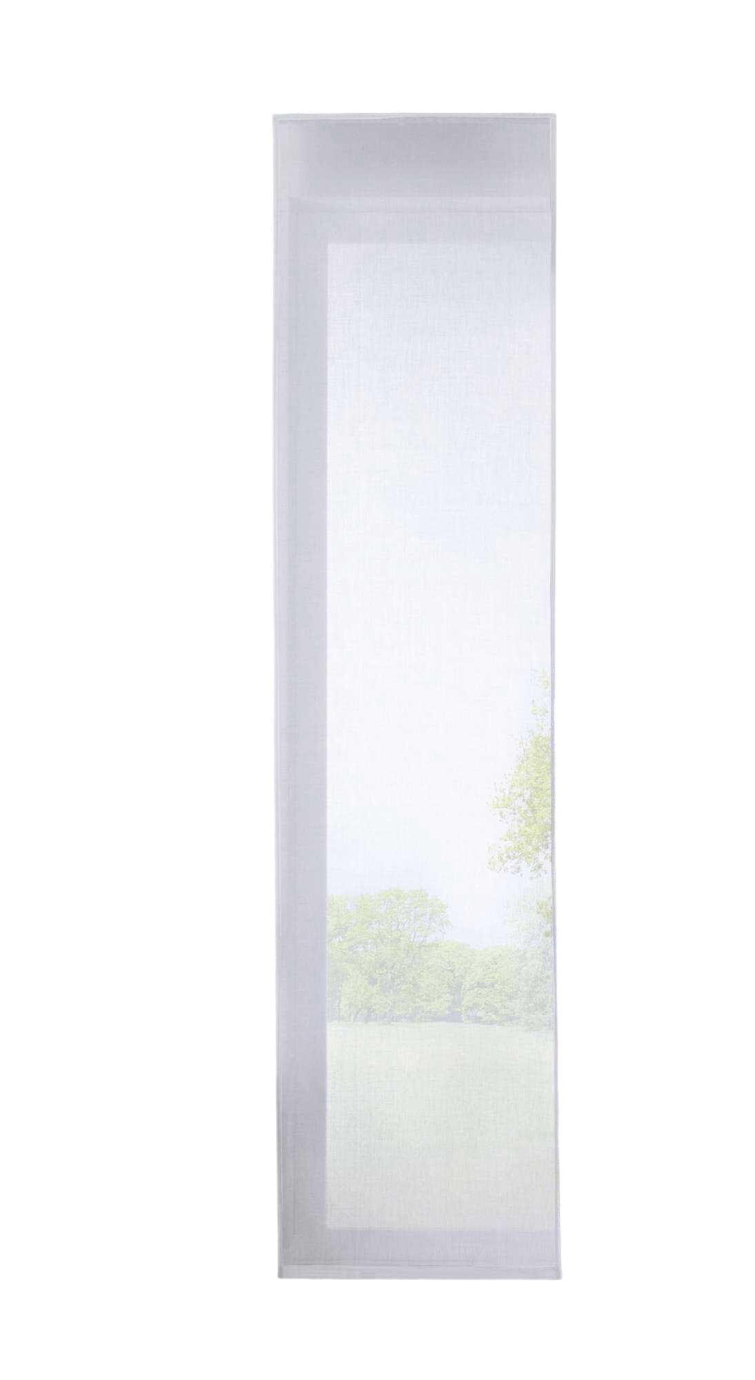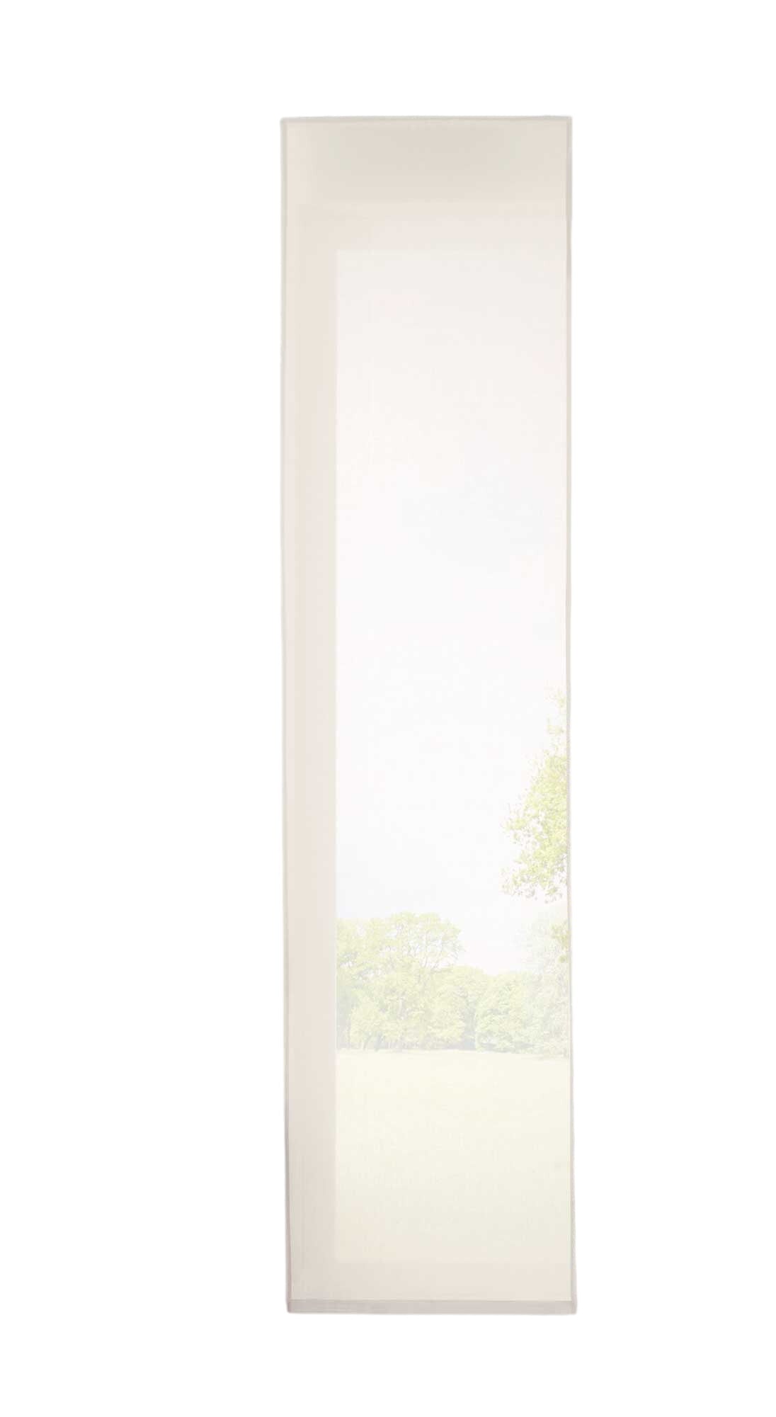Transparente Schiebegardine »Nizza« aus Baumwolle-Polyester Voile Mischgewebe. Der weich fallende Flächenvorhang sorgt für ein licht-durchflutetes und freundliches Ambiente an ihrem Fenster. Das Mischgewebe aus Baumwolle und Polyester vereint die Pflegeleichtigkeit von Polyester mit der matten strukturierten Oberfläche von Baumwolle. Einfache Befestigung mit Klettband an den mitgelieferten Paneelwagen. Geeignet für Gardinenschienen oder Gardinenstangen mit innenlauf.