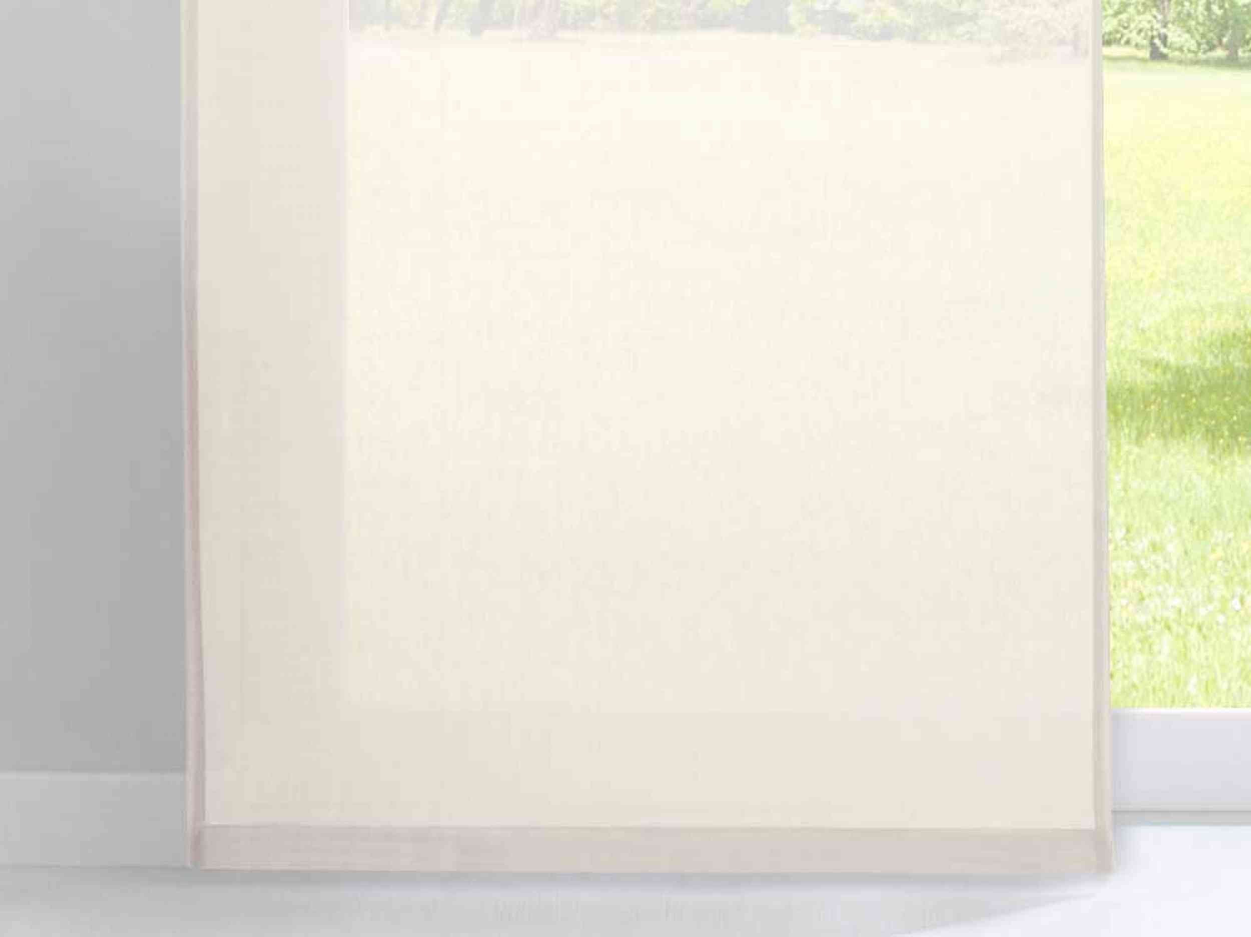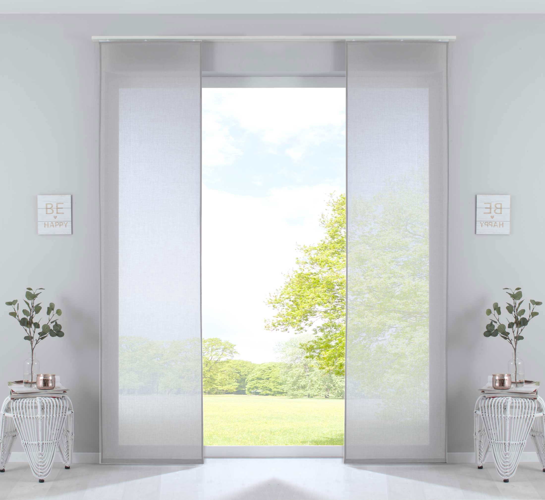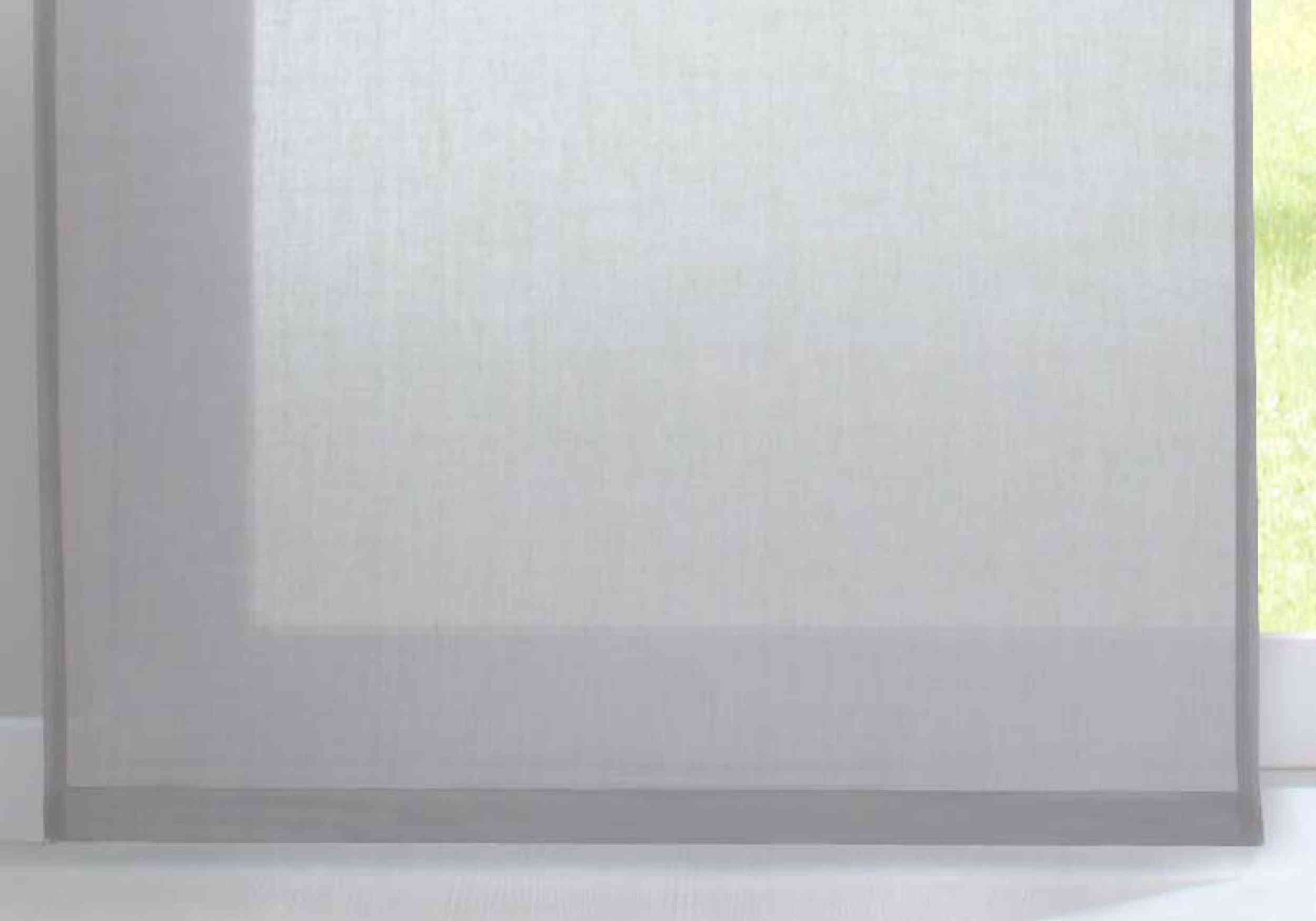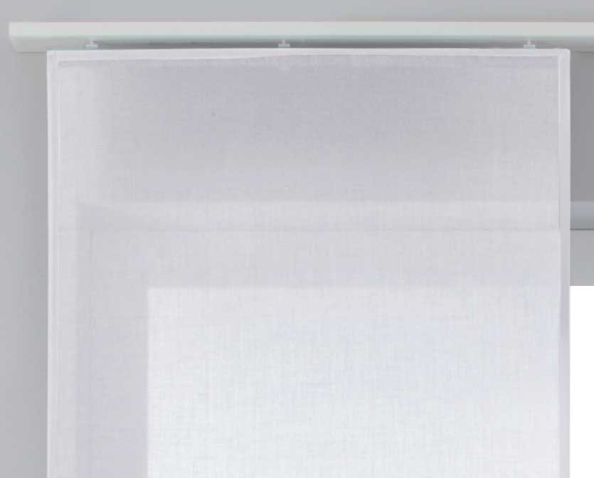 Transparente Schiebegardinen »Nizza« aus Baumwolle-Polyester Voile Mischgewebe. Die weich fallenden Flächenvorhänge sorgen für ein licht-durchflutetes und freundliches Ambiente an ihrem Fenster. Das Mischgewebe aus Baumwolle und Polyester vereint die Pflegeleichtigkeit von Polyester mit der matten strukturierten Oberfläche von Baumwolle. Einfache Befestigung mit Klettband an den mitgelieferten Paneelwagen. Geeignet für Gardinenschienen oder Gardinenstangen mit innenlauf.