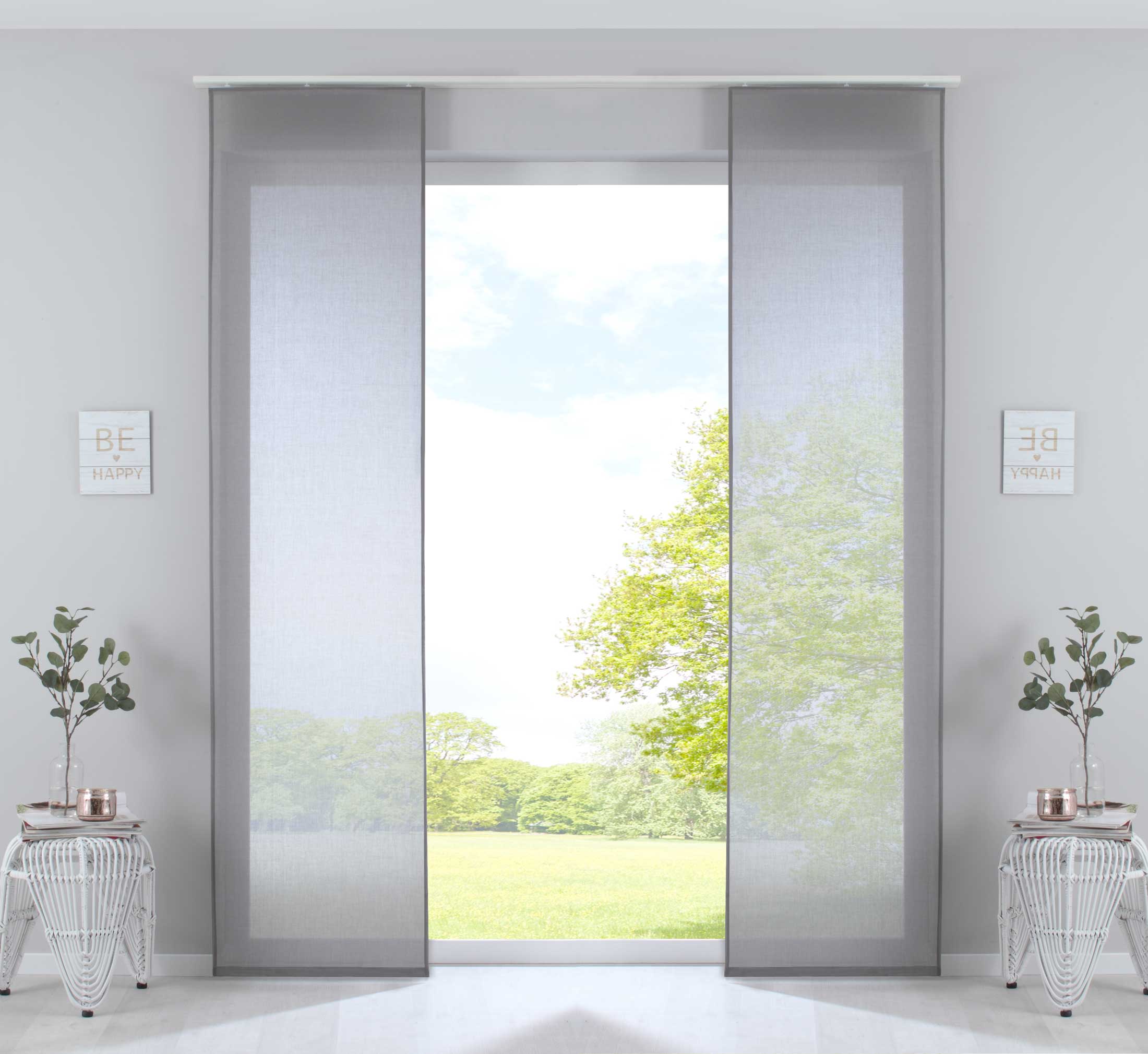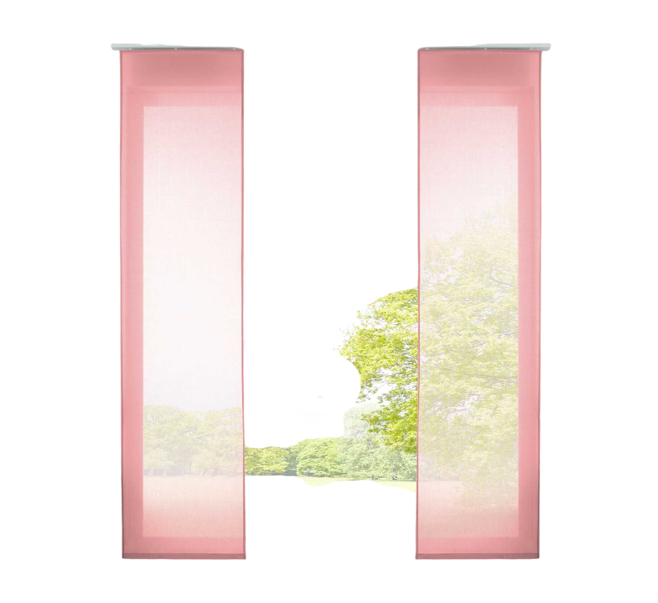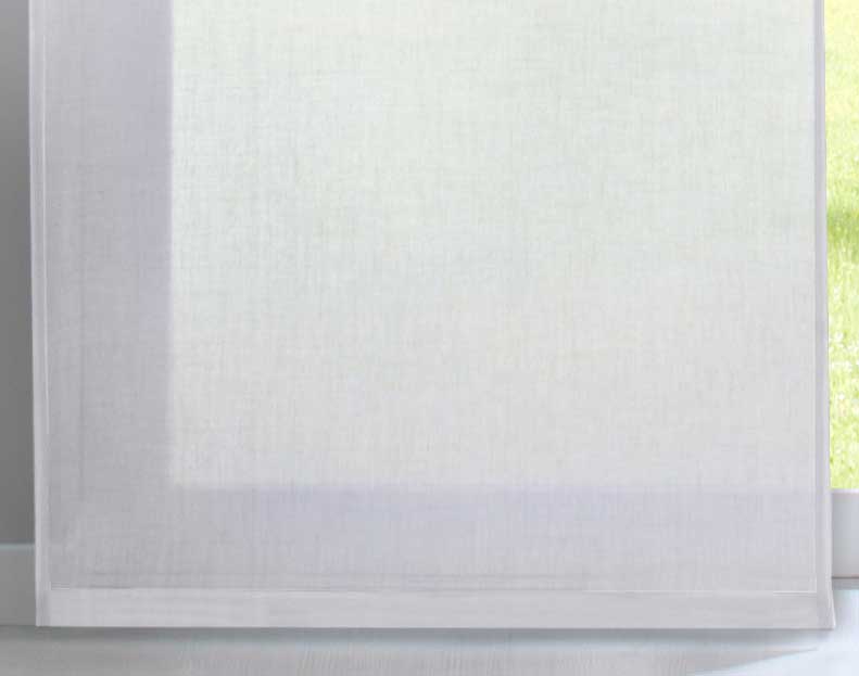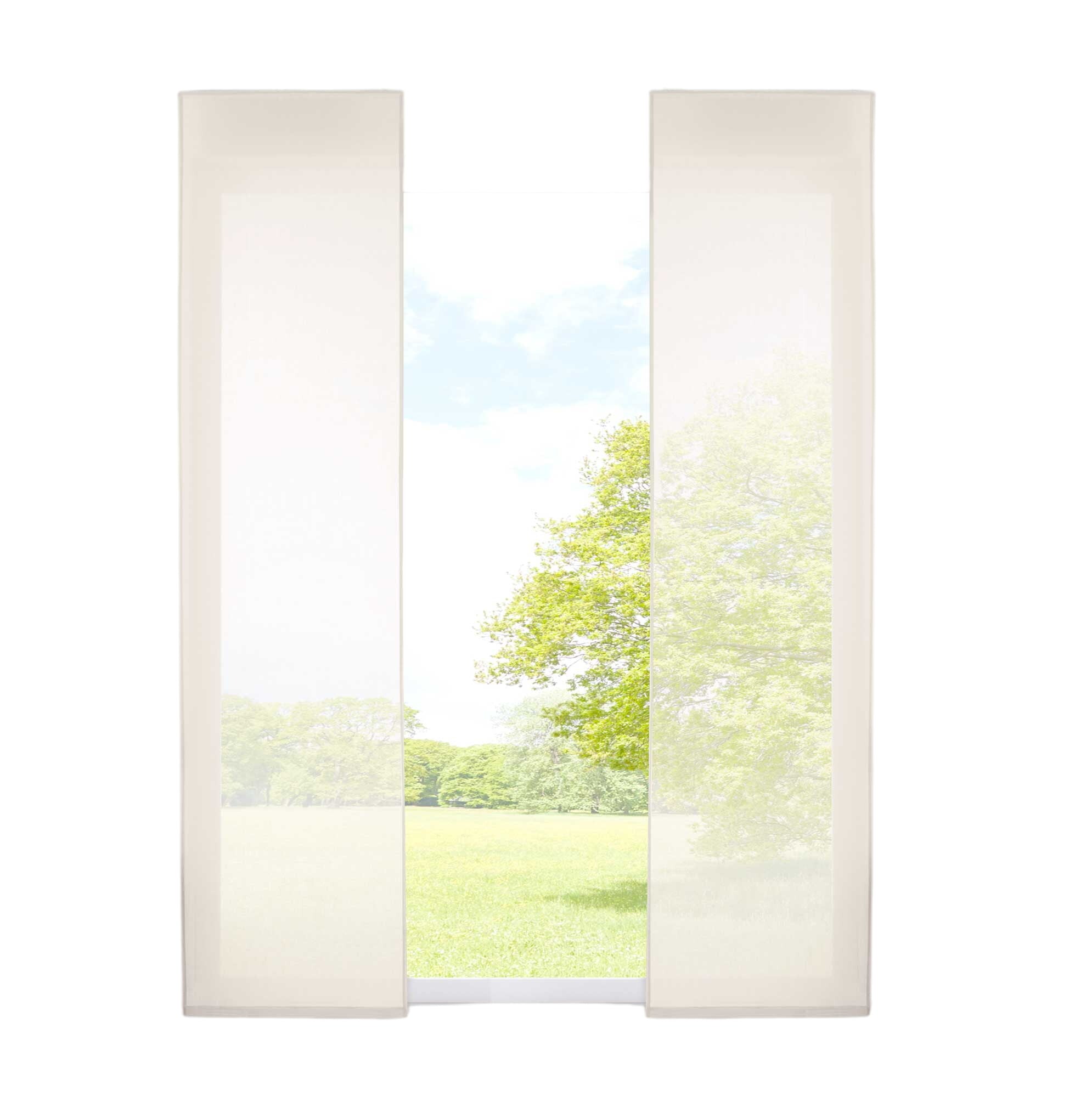 Transparente Schiebegardinen »Nizza« aus Baumwolle-Polyester Voile Mischgewebe. Die weich fallenden Flächenvorhänge sorgen für ein licht-durchflutetes und freundliches Ambiente an ihrem Fenster. Das Mischgewebe aus Baumwolle und Polyester vereint die Pflegeleichtigkeit von Polyester mit der matten strukturierten Oberfläche von Baumwolle. Einfache Befestigung mit Klettband an den mitgelieferten Paneelwagen. Geeignet für Gardinenschienen oder Gardinenstangen mit innenlauf.