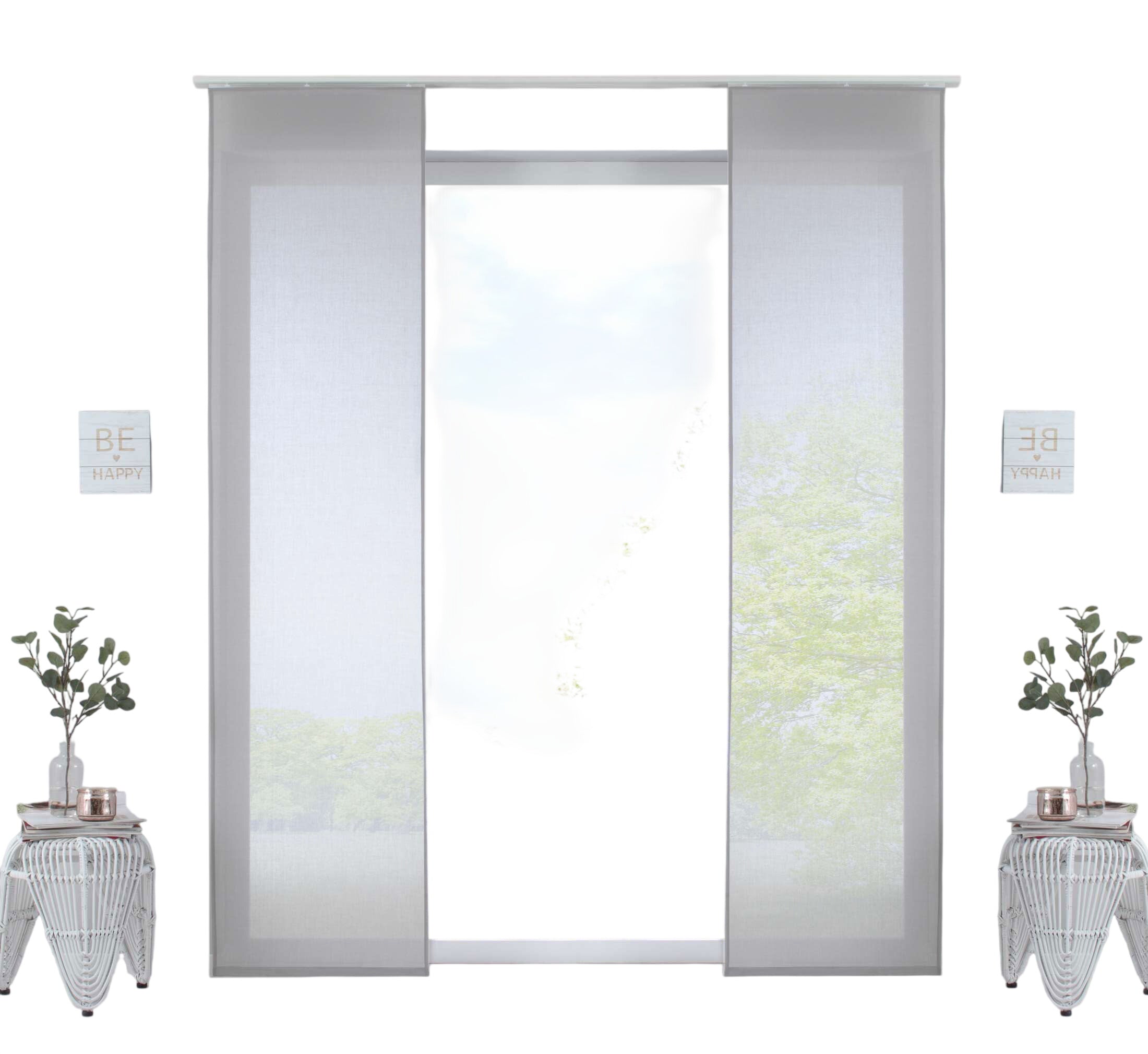 2 Schiebegardinen mit Paneelwagen und Beschwerungsstange