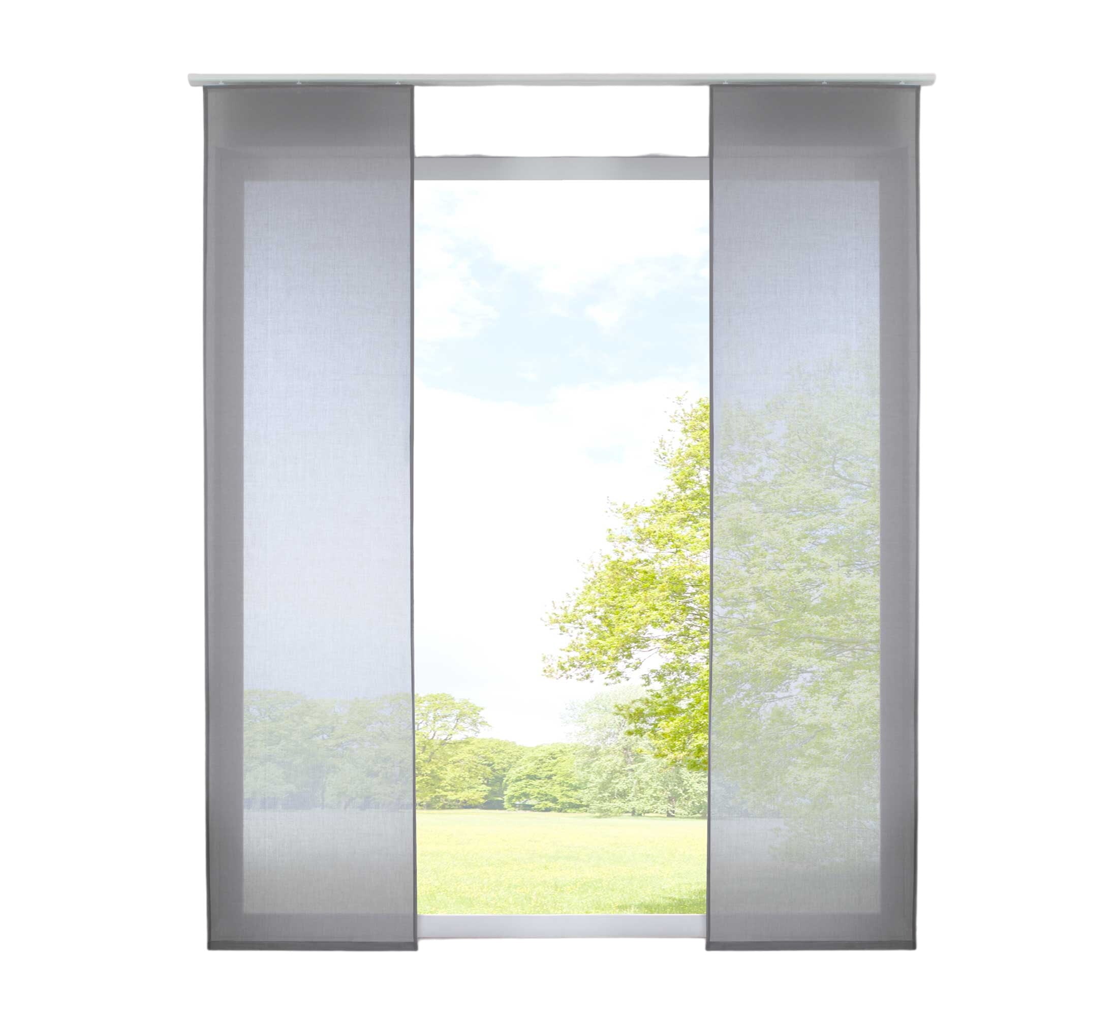 2er Set Schiebegardinen »Nizza« Baumwoll-Voile Halbvoile HxB 245x60 cm Grau Transparent Flächenvorhang mit Paneelwagen und Beschwerungsstange 2019032-2