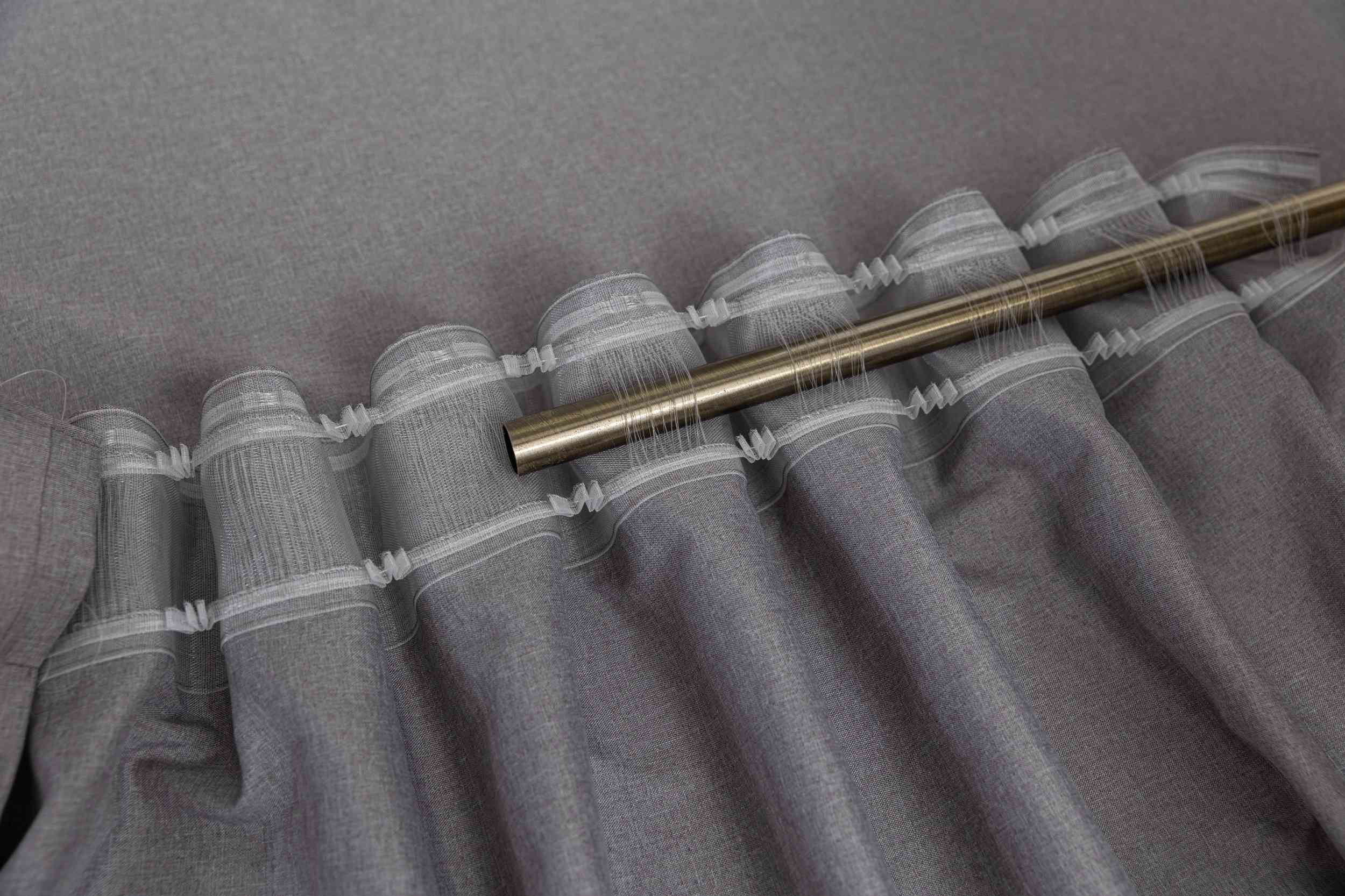 Mit Wellenband für eine einfache und stilvolle Befestigung an allen gängigen Gardinenstangen und Gardinenschienen mit Universalgardinenhaken oder Rollringen.